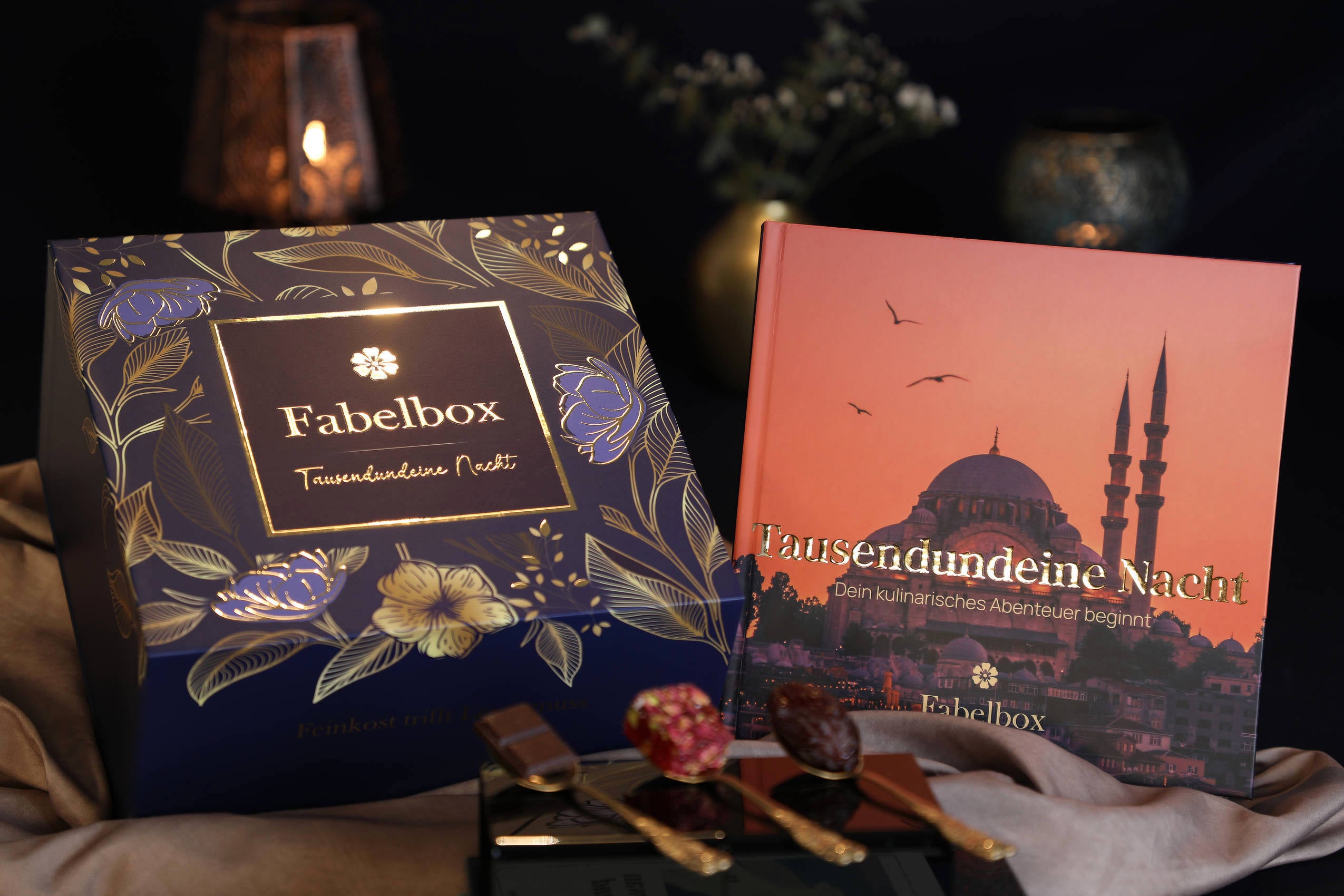 Geschenkbox mit orientalischen Spezialitäten und Kurzgeschichten aus der Welt der Dschinn
